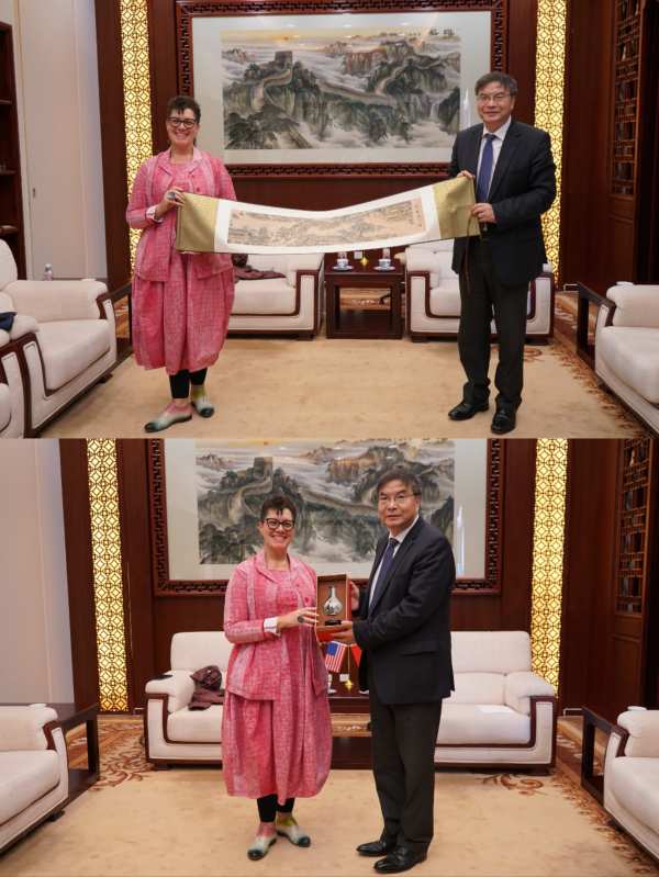 赵忠秀对Suzanne Elise Walsh的来访表示热烈欢迎,并向其介绍了我校目前的国际化办学情况以及北京的经济产业结构。赵忠秀提到北京正以“新质生产力”为导向,聚焦人工智能、卫星制造、新能源汽车等前沿领域,吸引科研人才与高校资源深度联动。我校作为服务国家对外开放战略的高水平院校,已成为连接前沿产业需求与高端人才供给、国际合作资源与本土创新实践的重要纽带。赵忠秀表示,中国的新型工业产出已成为全球产业格局的重要变量,对于中美携手探索产业与教育协同发展的新路径具有重大意义。